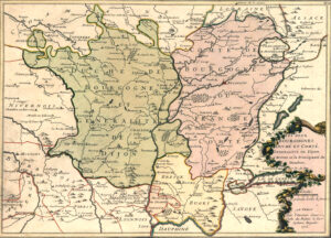 Illustration du numéro : Carte des deux Bourgognes de Nicolas de Fer, Les deux Bourgognes. Duché et Comté. Generalité de Dijon…, Paris, 1705 ; CC BY-NC-SA 3.0 license, David Rumsey Map Collection, David Rumsey Map Center, Stanford Libraries.